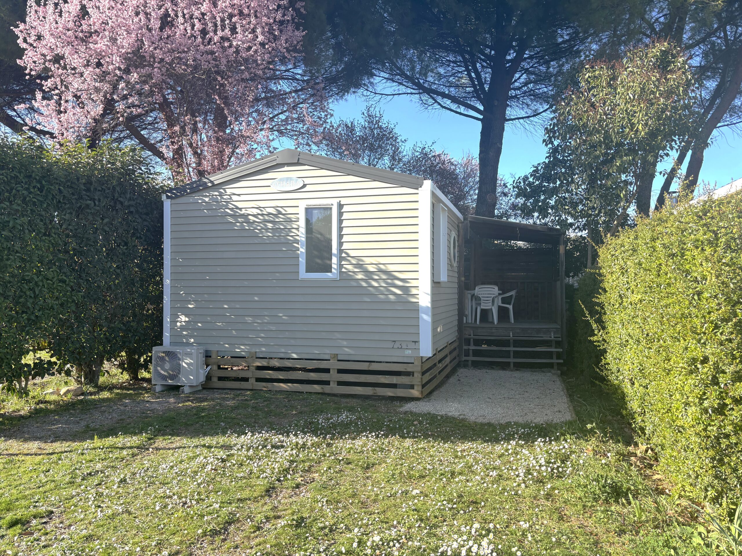 Stacaravan gelegen op de hoger gelegen delen van de camping.